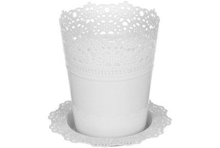 Кашпо Ажур D150 мм с подставкой Белый