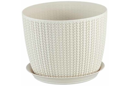 Кашпо Вязание D180мм 2,8л с поддоном Белый ротанг